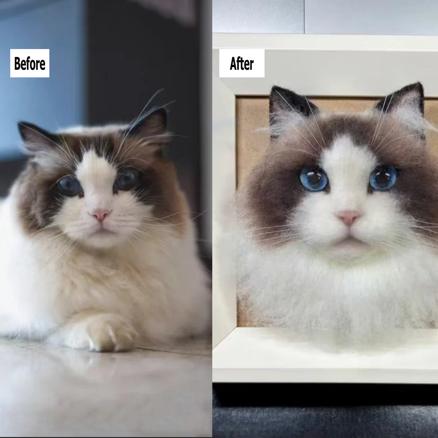 Behind every photo is a story of love — a wagging tail, a gentle purr, a moment that mattered. By placing the original picture beside the handmade result, we want you to see how much care goes into bringing that love back to life.