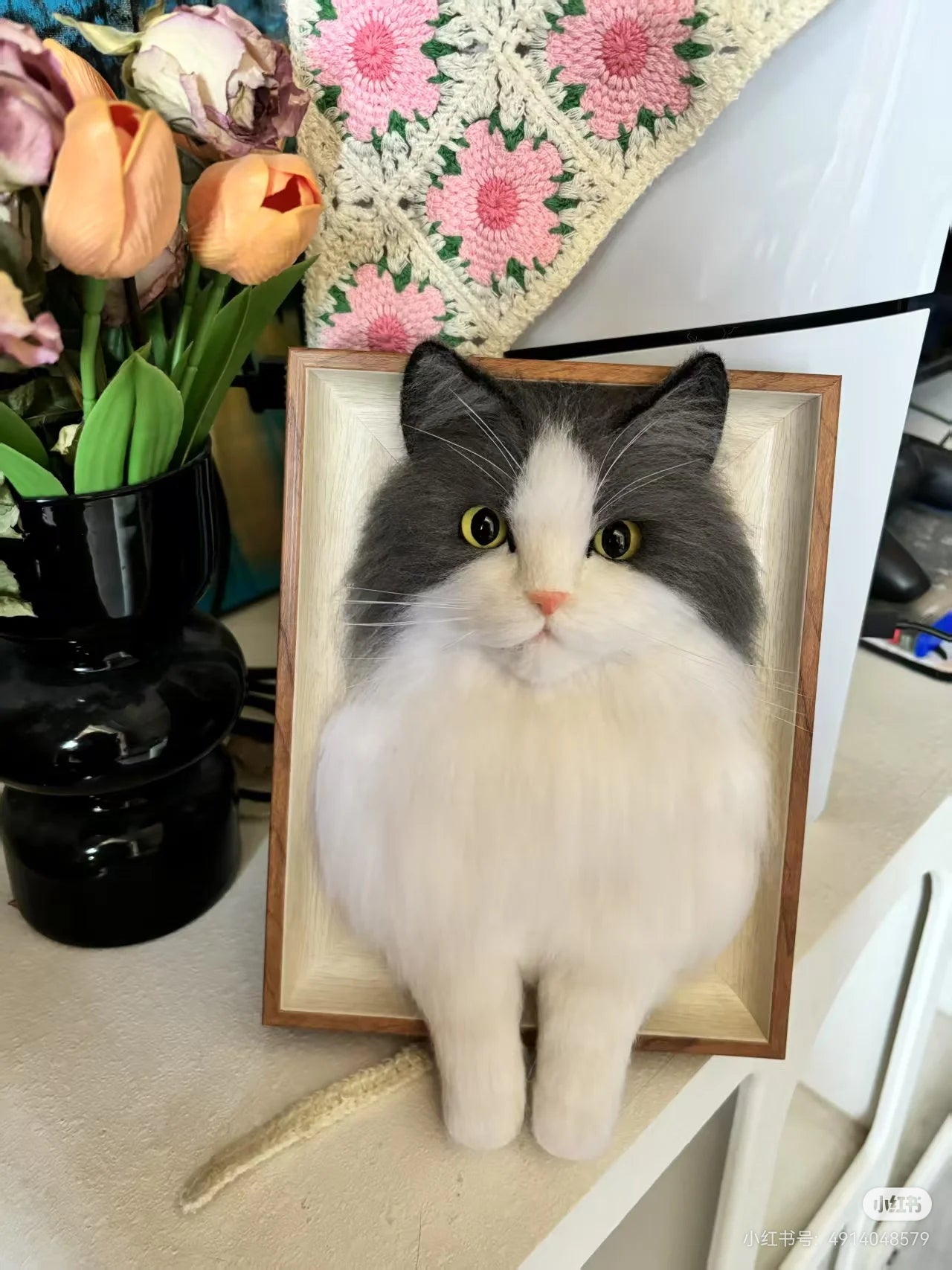 This handmade wool felt sculpture brings those precious moments back to life, turning your beloved cat into a lifelike work of art.